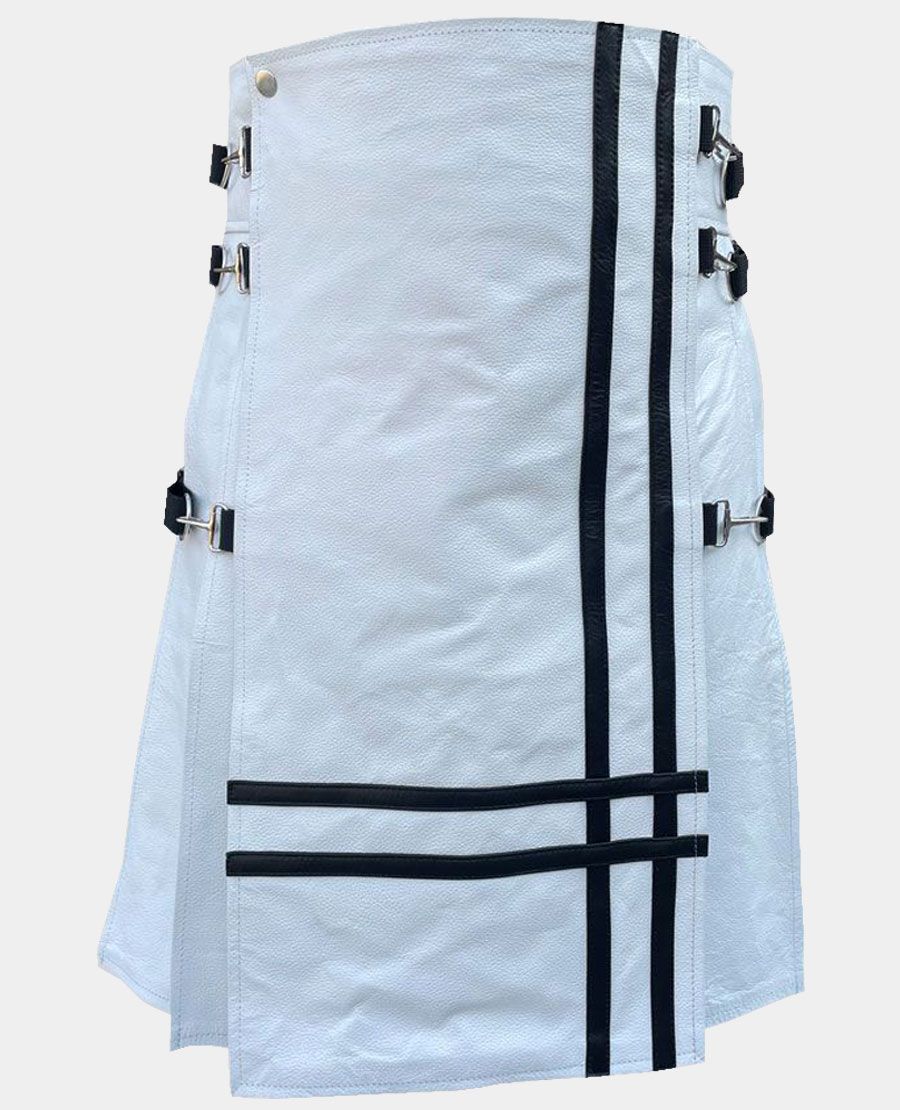 - Brand: This White Front Black Cross Leather Kilt is made by Kilt Attire
